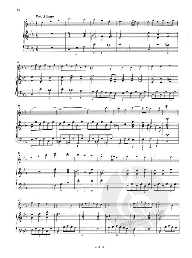 Aus der Familie Loeillet gingen im 17. und 18. Jahrhundert zahlreiche Musiker hervor. Die bekanntesten von ihnen waren die beiden Jean-Baptiste. Der Komponist der Sonaten des vorliegenden Bandes unterscheidet sich durch den Namen 'de Gant' von seinem Vetter, der unter dem Namen John' oder ,John of London' geführt wird. Letzterer lebte zwischen 1680 und 1730, ab 1705 in London. Wegen der Namensgleichheit sind die beiden Personen und ihre Werke noch bis in die Mitte dieses Jahrhunderts häufig verwechselt worden. Jean-Baptiste Loeillet de Gant wurde 1688 in Gent geboren. Sein Vater, Pieter Loeillet (1651-1735), der selbst ein namhafter Musiker war, trug für seine Erziehung Sorge. JeanBaptiste trat in jungen Jahren in den Dienst des Erzbischofs von Lyon und behielt diesen Posten bis zu seinem leider zu früh erfolgten Tode (er starb wahrscheinlich um 1720, aber auf jeden Fall vor 1729). Fünf Werke von ihm sind zwischen 1710 und 1717 in Amsterdam im Druck erschienen; sie wurden von dem Londoner Verleger John Walsh zwischen 1712 und 1722 neu aufgelegt. Zur Herausgabe des hier vorgelegten Sonatenzyklus wurde die Erstausgabe von etwa 1715 herangezogen. Auf dem Titelblatt ist folgender Text zu lesen: XII SONATES / à une Flute & Basse Continue /[...] / PAR /JEAN BAPTISTE L'OEILLET DE GANT / TROISIEME OUVRAGE / A AMSTERDAM / Chez Estienne Roger Marchand Libraire / No. 365. Sie ist in der Bibliotheque Nationale, Paris unter der Signatur Rés. F. 1500. aufbewahrt. Bei der Überprüfung der Ausgabe von Walsh hat sich herausgestellt, daß Rogers Erstausgabe viel genauer ist, so daß der Walsher Ausgabe kein Quellenwert zukommt. (Ein Exemplar der letzteren befindet sich in der British Library, London, Signatur i 26 [Sch. No. 1684] mit folgender Aufschrift: XII Sonates [... ] by Loeillet de Gant / Opera Terza / London.) Für die Zuschickung der Mikrofilme der Quellen möchte ich den oben erwähnten zwei Bibliotheken meinen Dank aussprechen. Bei der Herausgabe wurden die modalen Vorzeichen aufgelöst, die Versetzungszeichen ergänzt bzw. gestrichen, wo dies notwendig war; die offensichtlichen Druckfehler wurden verbessert und einige Rhythmusformeln gedeutet. Eine ausgesetzte Continuo-Stimme ist angegeben und die Stimmen sin mit den notwendigen Vortragszeichen versehen worden. D Anmerkungen, Zutaten in eckigen Klammern sowie die g, strichelten Bögen der Partitur vergegenständlichen die wicl tigsten Eingriffe des Herausgebers. Die offenkundigen Verbe serungen sind nicht besonders gekennzeichnet. Die Verzie rungszeichen, Bögen, Strich- und Atmungszeichen der Stimmen sind in der Partitur nicht angegeben; sie gelten als praktische Vorschläge für die Vortragenden. Eine Abweichung vc ihnen ist durchaus möglich; der ursprüngliche Notentext kan nämlich aus der Partitur rekonstruiert werden. In den Quellen sind die Verzierungen durchwegs mit kleinen, kreuzartigen Zeichen gestochen. Meistens bedeuten sie Triller (gegebenfalls mit ausgeschriebenem Nachschlag); vom Tempo und Wert der zu verzierenden Note abhängend kann jedoch auch ein kürzeres Ornament verwendet werden. Es kann sowohl mit der Hauptnote als auch mit ihrer untere oder oberen Wechselnote beginnen; die Wahl sollte von der Melodielinie abhängen. Das gleiche trifft auch für die Endnote zu, ob sie nämlich ein einfaches Aufhören auf der gegebene Note, ein Nachschlag oder eine Antizipation der nah folgenden Note wird. - Die vorliegende Ausgabe kann nicht jede Stelle und jede Art der im Barockzeitalter üblichen Verzierungen angeben, nicht einmal in der ergänzten Variante der Stimme. Bei Wiederholungen, bei der Wiederkehr der Themen (insbesondere in rondoartigen Formen) sowie in jedem langsamen Satz empfiehlt es sich, Verzierungen reichlich zu improvisieren. - Die Verzierungen italienischer Art des kurzen dritten Satzes der II. Sonate stammen vom Komponisten. Sie bieten daher eine seltene und günstige Gelegenheit zum Kennenlernen der damaligen Aufführungspraxis. Der Satz ist mit gewisser Freiheit zu spielen; die