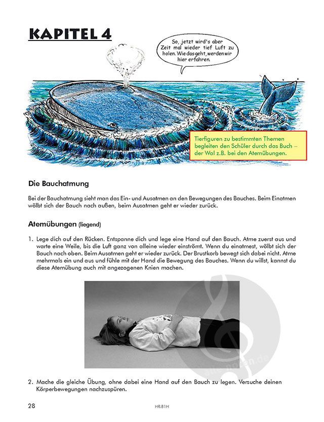 Atemübungen, Fitness-Training, Singen, Auswendigspielen und das Erfinden eigener Melodien sind weitere Aspekte des Unterrichts, die einer ausgewogenen musikalischen Ausbildung der Schüler dienen.
