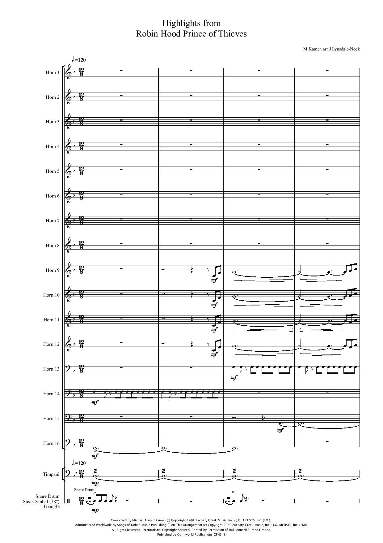 Auswahl von Themen aus dem Soundtrack von Michael Kamen zum Film von 1991. Diese Highlight-Auswahl enthält mehrere Cues/Themen aus dem Film, darunter Maid Marion, Opening Sequence, Escape from Sherwood und Finale Sequence.