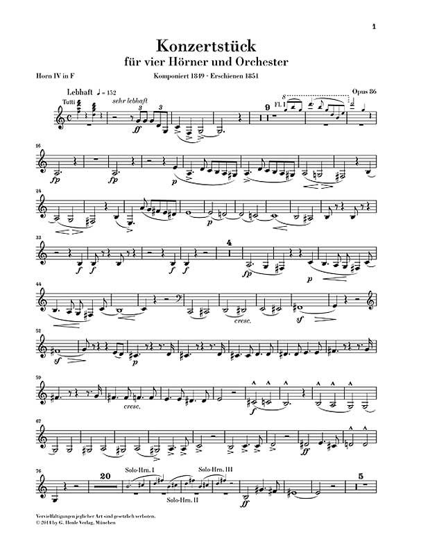 Konzertstück für 4 Hörner und Orchester op. 86