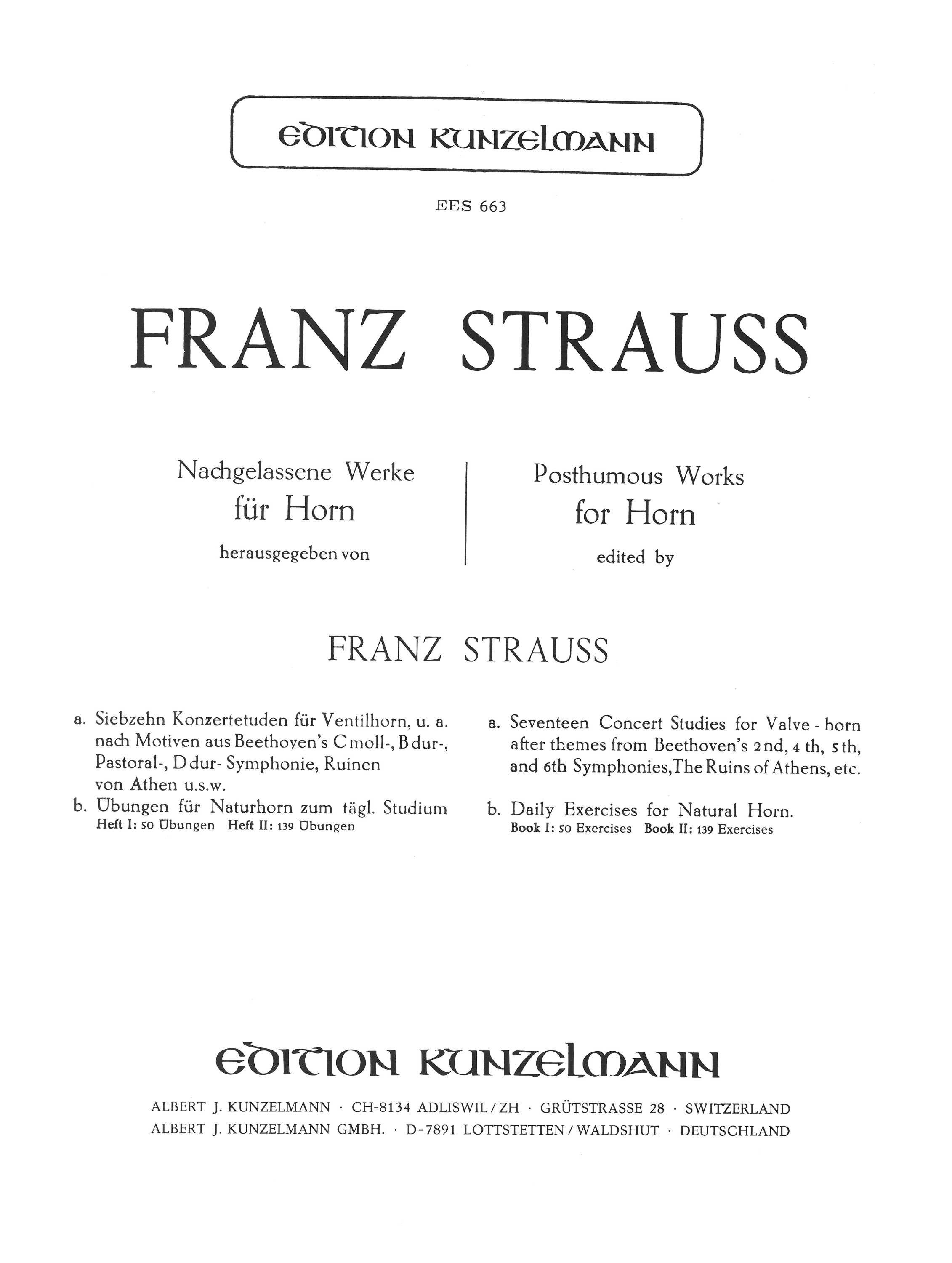 17 Konzert-Etüden für Ventilhorn, u. a. nach Motiven aus Beethovens c-moll-, B-dur-, D-dur- und Pastoral-Symphonie, Ruinen von Athen