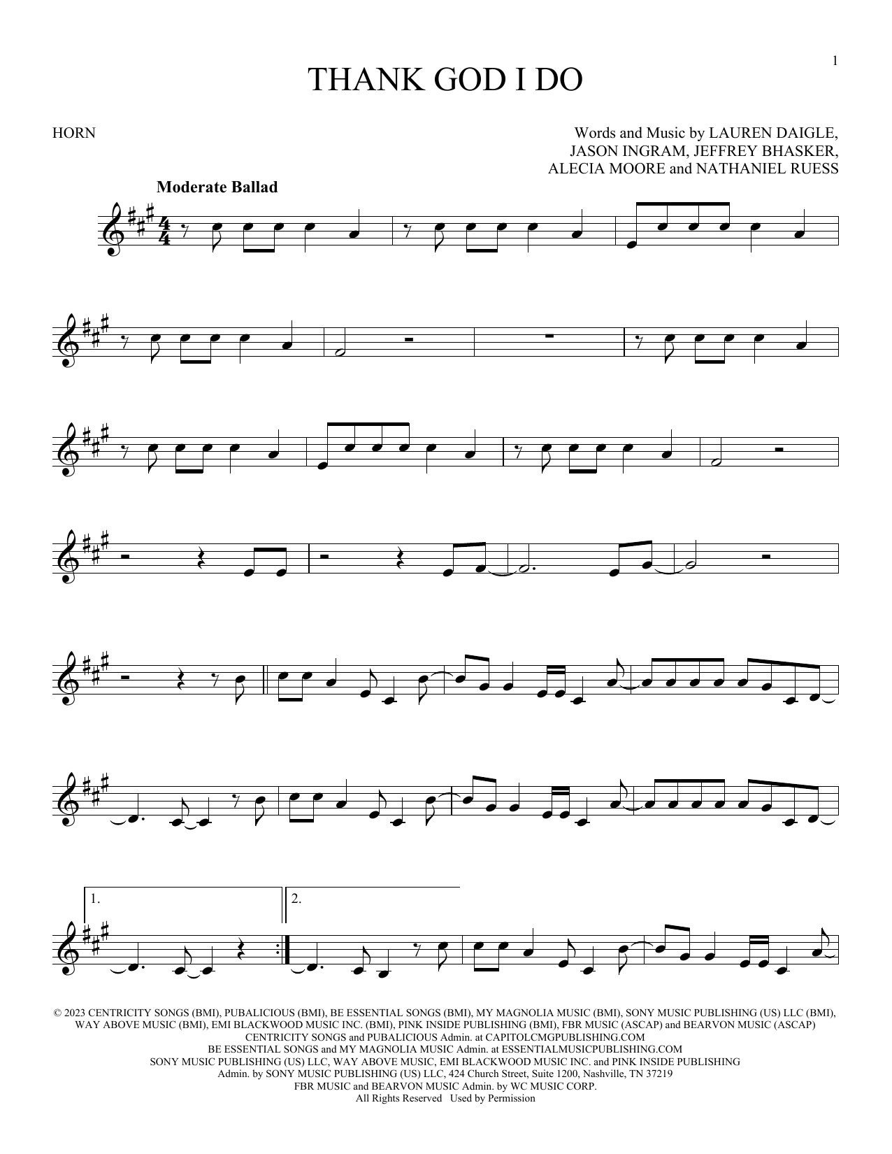 - Komponist Nathaniel Ruess, Alecia Moore Jason Ingram Jeffrey Bhasker