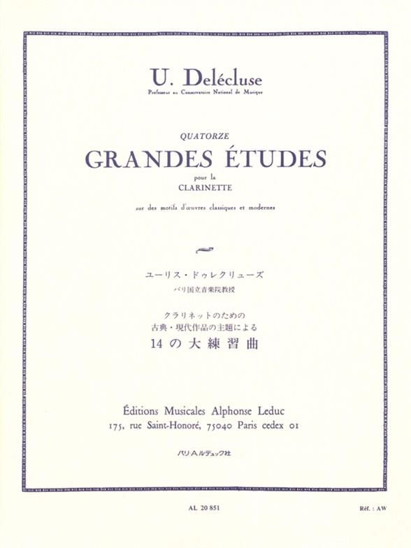 Fourteen great studies by Ulysse Delécluse is a set of works based on some sections of famous music pieces. Arranged for clarinettists, the level of this set can be considered as difficult, including trills, rapid rhythms, fast tempos, accidental sharps and flats, accidental notes and keys up to four sharps and 2 flats.