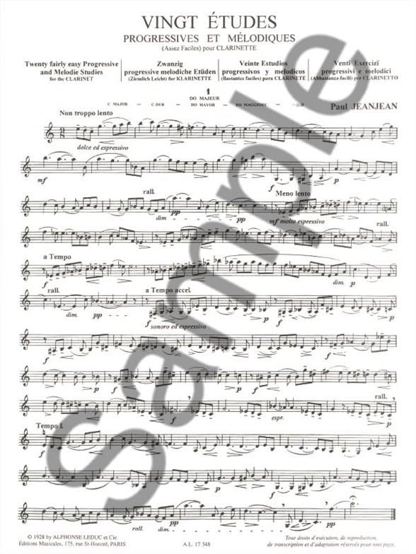 Like a technical encyclopedia for the clarinet, Etudes Progressive et Mélodiques provides a detailed guide to establishing a high standard of technique on the instrument. Jeanjean's compilation covers all aspects, from quicksemiquaver studies to melodic minor études, making the book a must buy for all clarinetists. As a noted virtuoso clarinet player himself, Jeanjean's understanding of the practice of technical elements is second to none. The EtudesProgressives et Mélodiques supplies a steady development from beginning to end and with titles in five languages, this Paul Jeanjean study book cannot be missed.