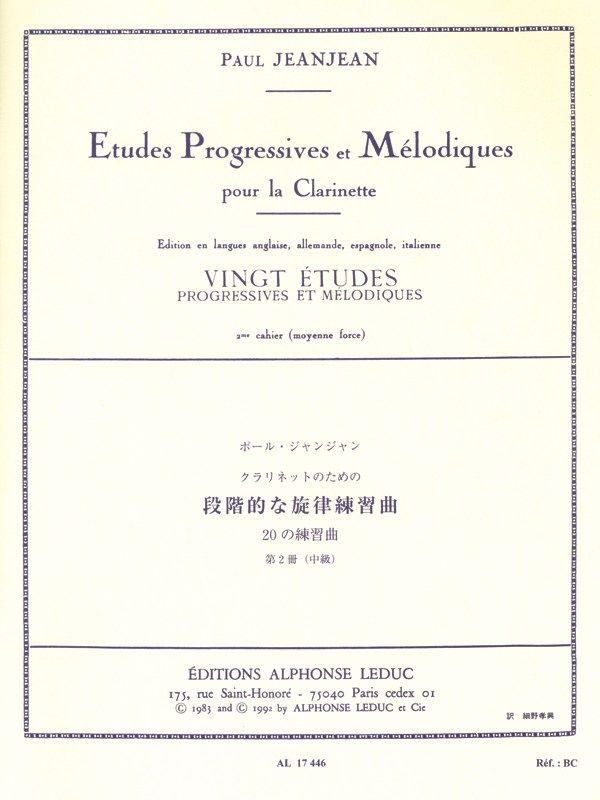Like a technical encyclopedia for the Clarinet, Progressive and Melodic Studies Volume 2 provides a detailed guide to establishing high standard technique on the instrument. Jeanjean 's compilation covers all aspects, from quick semiquaver studies to melodic minor études, making the book a must buy for all clarinetists. As a noted virtuoso Clarinet player himself, Jeanjean 's understanding of the practice of technical elements is second to none. Progressive and Melodic Studies for Clarinet Volume 2 supplies steady development from beginning to end, and with titles in five languages, this Paul Jeanjean study book cannot be missed.