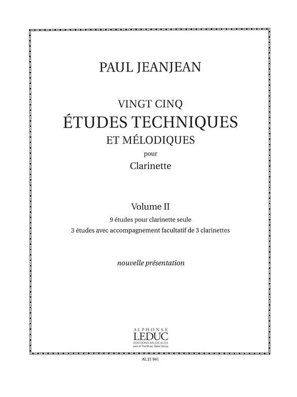 Like a technical encyclopedia for the Clarinet, 25 Technical and Melodic Studies provides a detailed guide to establishing high standard technique on the instrument. Jeanjean's second volume in the compilation covers all aspects, from complex rhythms to articulation, making the book a must buy for all clarinetists. As a noted virtuoso Clarinet player himself, Jeanjean's understanding of the practice of technical elements is second to none. The 25Technical and Melodic Studies supply steady development in the context of nine solo studies and three studies for three Clarinets. This Paul Jeanjean study book cannot be missed by aspiring clarinetists.