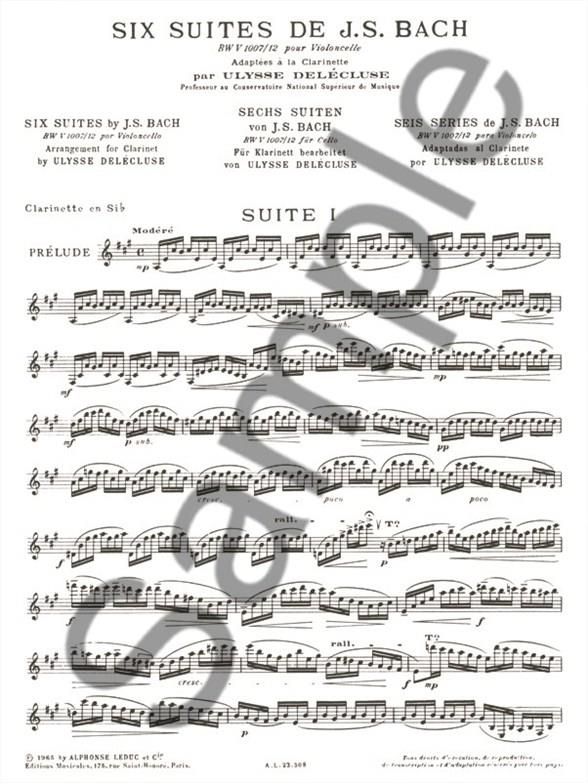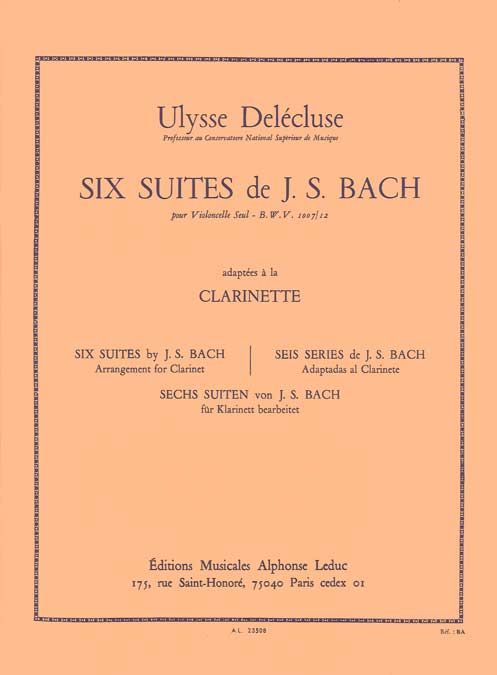 The infamous Six Cello Suites by J. S. Bach are perfectly arranged for the Clarinet by French clarinetist, Ulysse Delécluse (1907-1995). Bach originally composed the Cello Suites, some of the most recognisable and frequently performed solo compositions ever written for the instrument, during the period 1717-1723, when he served as Kapellmeister in Köthen. Delécluse 's adaptions for Clarinet (1965) include phrase marks, dynamic markings, articulation and performance directions. Delécluse 's adaptions are flawless, making the notorious Suites enjoyably accessible for the Clarinet.