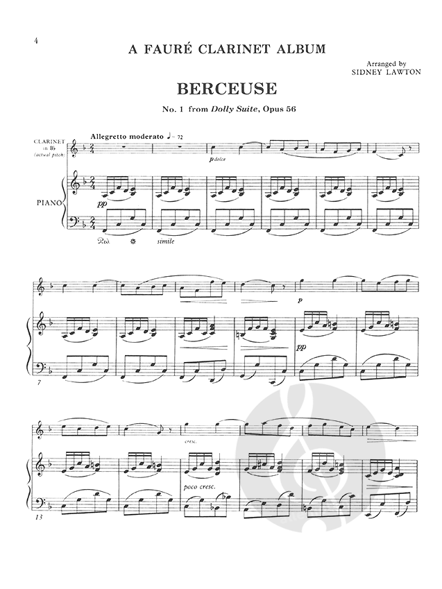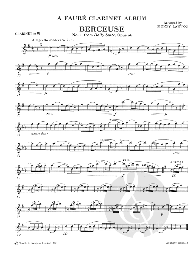 A collection of pieces by Faure, arranged for clarinet and piano by Sidney Lawton.