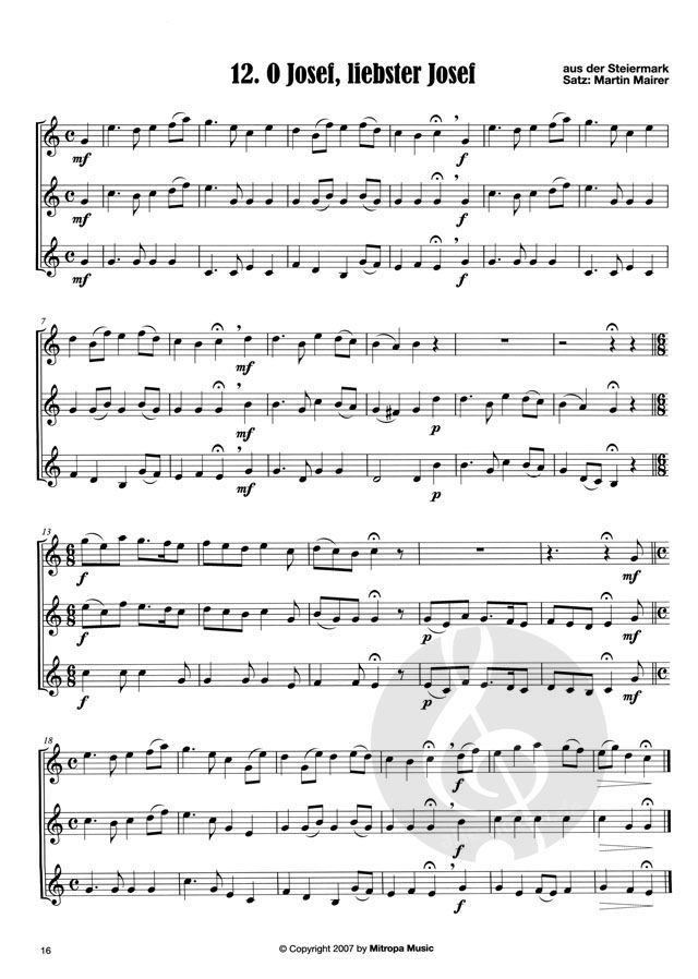 Kerzenschein, Lebkuchen, Glühwein, Weihnachtsschmuck und vieles mehr ist untrennbar mit Weihnachten verknüpft - doch erst mit Musik kommt die richtige Weihnachtsstimmung auf! Mehrstimmiger Bläserklang ist besonders stimmungsvoll. Sie sind nur zu dritt? Dann ist diese Sammlung für drei gleiche Instrumente genau das Richtige für Sie. In Alpenländische Weihnachten sind 25 wunderschöne Weihnachtslieder aus dem Alpenraum in klangvollen dreistimmigen Sätzen versammelt.