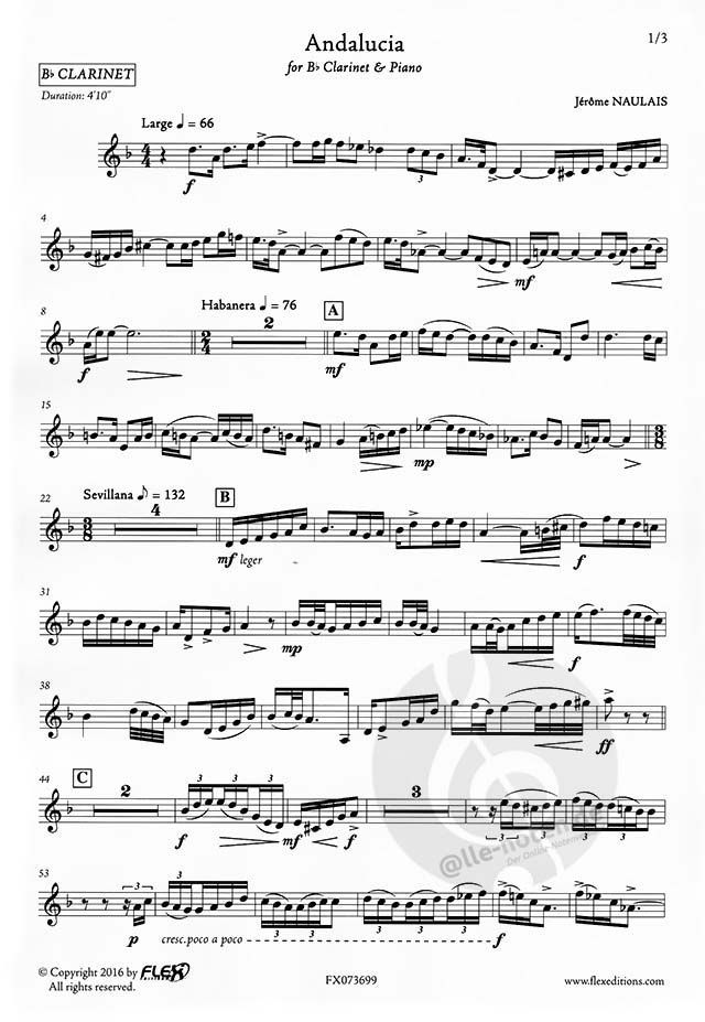 A piece that can be played from 6 years of instrument practice - Instruments: 1 Bb Clarinet 1 Piano - Difficuly Level: Grade 4 - Duration: 4 mn 10 s - Musical Style: Classical, Educational - Category: Original Composition - Composer: Jérôme NAULAIS -