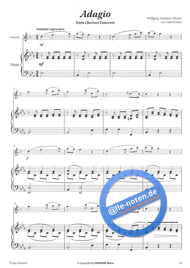 Wolfgang Amadeus Mozart, Colin Cowles Adagio from Clarinet Concerto