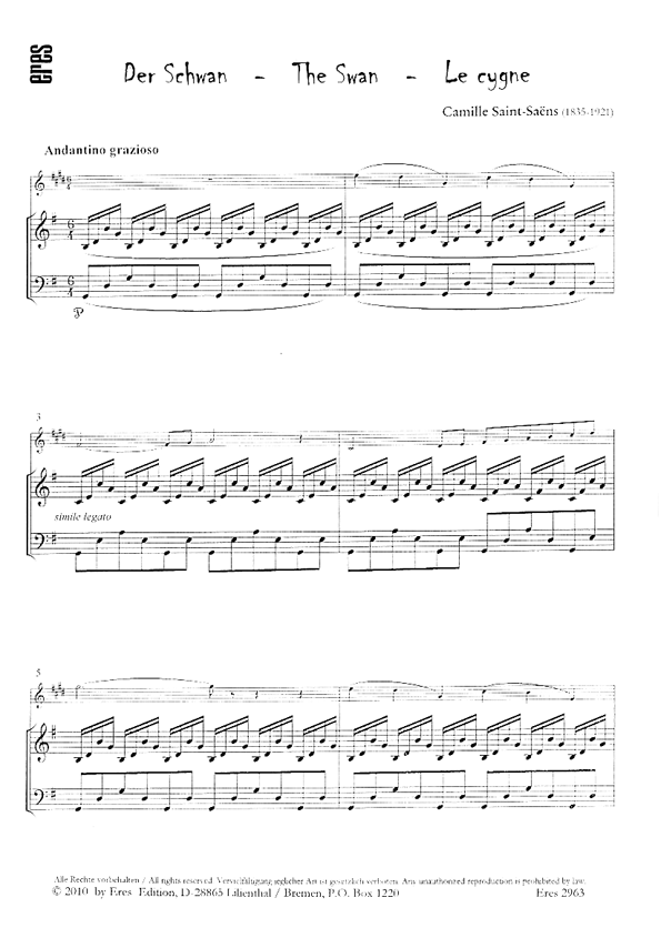 für Klarinette oder Saxophon und Klavier. Das bekannteste Stück aus dem Zyklus 'Karneval der Tiere'.