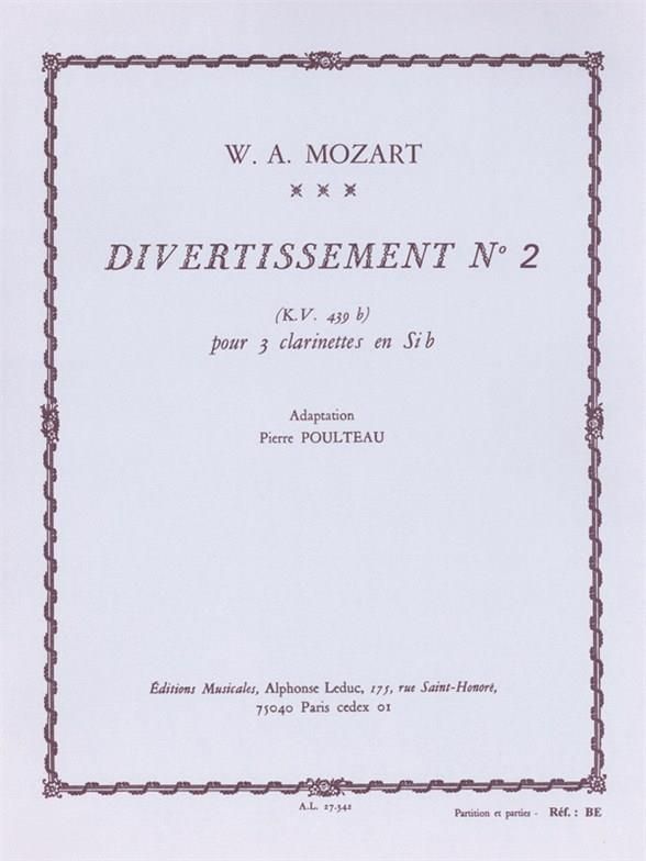Wolfgang Amadeus Mozart's Divertissement No. 2, KV439b for 3 Clarinets. Score/parts.