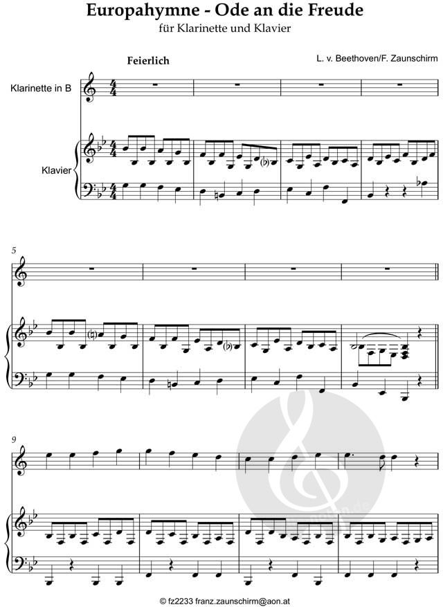 Ein klassisches Arrangement von Beethovens Melodie mit einfacher Klavierbegleitung, das eine würdige und optimistische Stimmung erzeugt.
