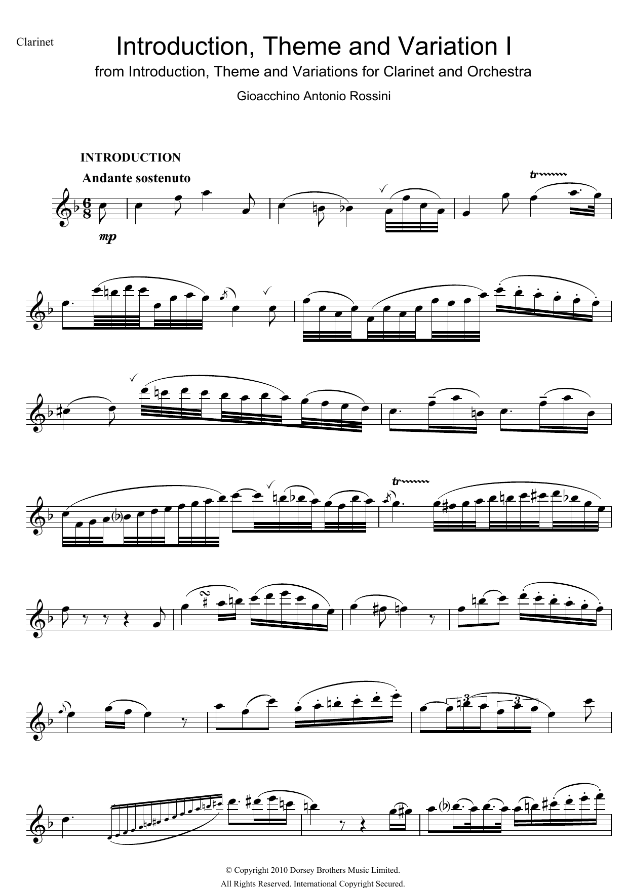 Introduction, Theme And Variations For Clarinet and Orchestra