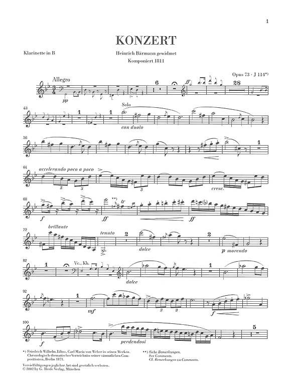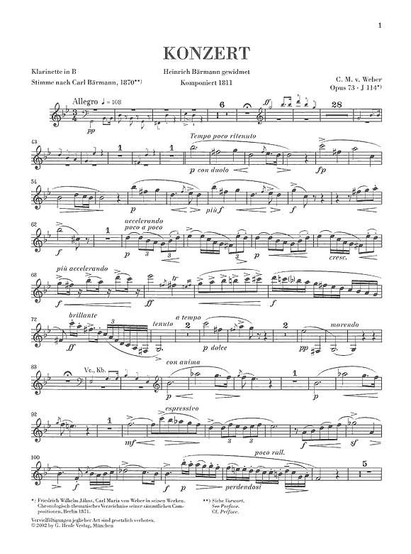 Carl Maria von Webers Konzert in f-moll gehört zu den Kompositionen ersten Ranges für die Klarinette als Soloinstrument - weltweit fest etabliert im Konzertrepertoire. Die von Norbert Gertsch vorgelegte Urtextausgabe mit Klavierauszug stellt die originale Solostimme vergleichend neben die verbreitete Fassung Carl Bärmanns (beide Stimmen liegen der Ausgabe bei). Im begleitenden Textteil wird die Bedeutung beider Fassungen und ihr Verhältnis zueinander ausführlich erläutert.