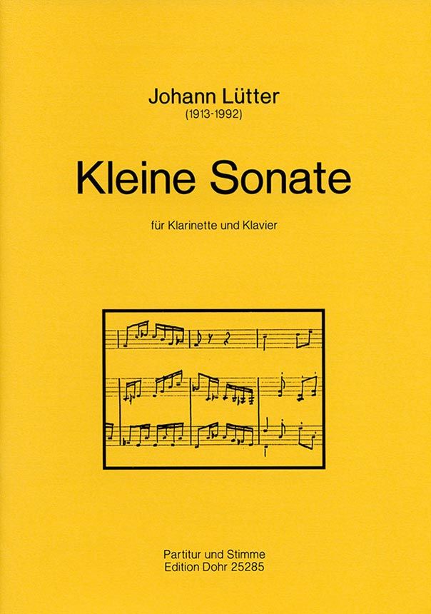 Reihe: Johann Lütter: Gesamtausgabe der vollendeten Werke. Klarinette, Klavier; Partitur, Solostimme. Format: 22 S. Part. 7 S. Stimme - 29,7 x 21 cm.