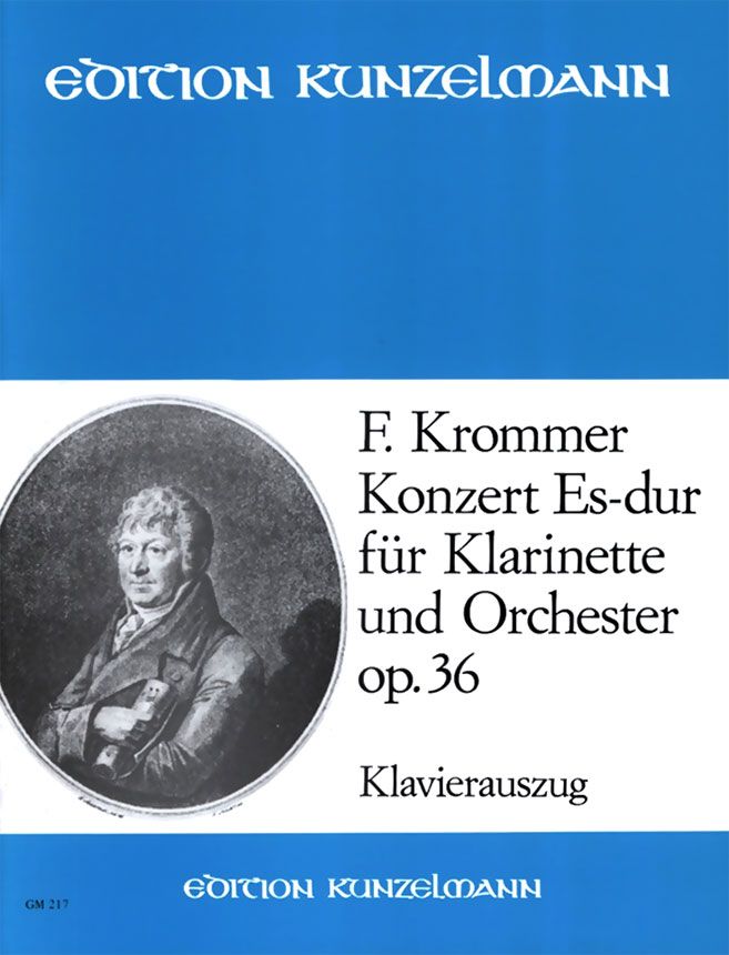 Die Werke von Franz Vinzenz Krommer sind in der heutigen musikalischen Praxis kaum bekannt. Der Name des aus Mähren stammenden Komponisten war ursprünglich Franciscus Vincentius Kramai, da er sich aber hauptsächlich in Österreich betätigte, benützte er die deutsche Version seines Namens. Er wurde am 27. November 1759 in Kamenice, in der Nähe von Trebic geboren. Er gehörte der zweiten Generation des Wiener Klassizismus, ist 11 Jahre früher geboren als Beethoven und überlebte ihn um vier Jahre. Die musikalischen Grundkenntnisse lernte er von seinem Onkel Antonius, von dem er Violin- und Orgelunterricht erhielt. 1785 verließ er endgültig seine Heimat. Nach einem vorübergehenden Aufenthalt in Wien betätigte er sich zehn Jahre lang als Violinkünstler, Chorleiter und Dirigent in ungarischen Städten. Nach seiner Laufbahn in Ungarn siedelte er sich in Wien an. 1806 trat er in den Dienst des Hofes, wo er erster Violinist der Hofkapelle war. 1810 wurde er zum musikalischen Leiter das Balettensembles des Hoftheaters ernannt und erhielt 1815 von Kaiser Franz den Titel 'Kammerthürhüter'. Krommer begleitete seinen Herrn mehrmals auf seine Reisen nach Frankreich und Italien. Nach dem Tod von A. Kozeluch wurde er zum Hofkapellmeister und Komponisten ernannt. Zahlreiche internationale Auszeichnungen, die er im Verlauf seines Lebens erhielt, beweisen, dass sich er großer Anerkennung erfreute. Er starb im Alter von 72 Jahren am 8. Januar 1831 in Wien. Gemäss den neuesten musikhistorischen Forschungen von j. Racek hinterliess Krommer der Nachwelt annähernd dreihundert Kompositionen. Er betätigte sich in den verschiedensten instrumentalen Kunstarten und die damaligen Kritiken hielten ihn auf einigen Gebieten für den Nachfolger Haydns. Das mit Op. 36 bezeichnete Klarinettenkonzert in Es-Dur erschien zum erstenmal beim Verlag J. Andre (Offenbach s. Main) wahrscheinlich im Jahr 1803. Aufgrund des Klarinettenkonzertes können wir Krommer für einen späten Representanten des Wiener Klassizismus halten. Durch die grösseren Formenproportionen und die empfindliche Melodiengestaltung steht das Werk der Musik Schuberts näher, als der der drei großen Wiener Meister. Das Stimmenmaterial der ersten Ausgabe des Klarinettenkonzertes in Es-Dur ist in dem Archiv der Wiener Gesellschaft der Musikfreunde unter der Signatur VIII. 2513/i aufbewahrt. Auf dem Titelblatt steht die folgende Aufschrift: Concerto / pour /la Clarinette / avec accompagnement d'orchestre / dédié à/ Monsieur de Marsano, / par / F. Krommer. /Oeuvre 36 / - Offenbach s. m. chés ,/J. André. Aus den gut lesbaren Stimmen konnten die Tonhöhen, die rhythmischen Werte und die Takteinheiten eindeutig festgelegt werden, nur bezüglich der dynamischen Zeichen und der Phrasierung musste das Quellenmaterial ergänzt werden. Melinda Berlász