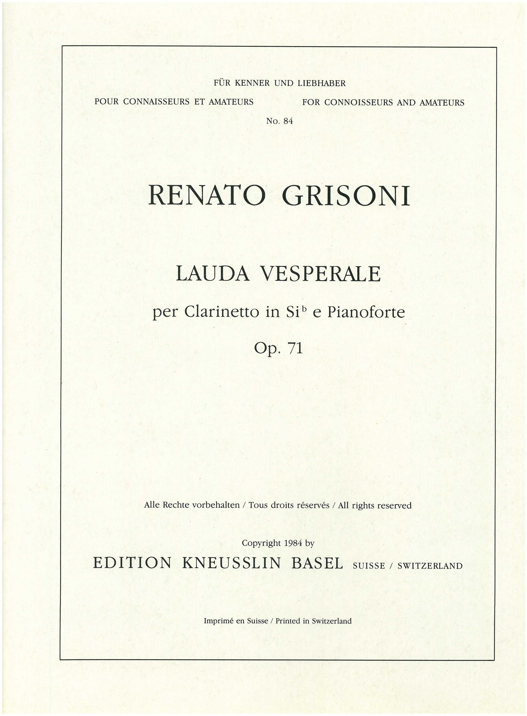 Lauda vesperale B-dur für Klarinette und Klavier