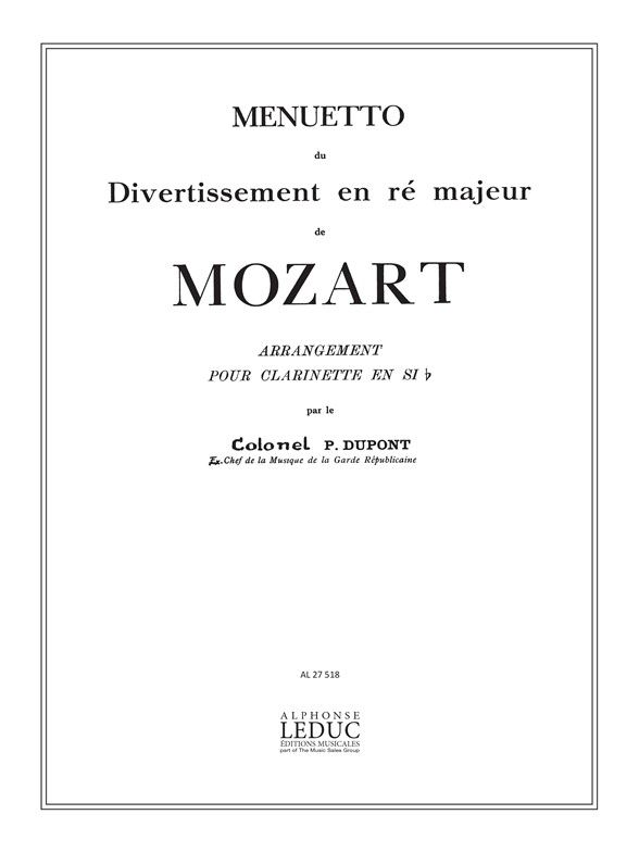 Mozart Dupont Menuetto Du Divertissement In D Clarinet & Piano Book