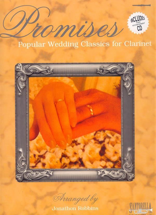 Promises Wedding Classics published by Santorella Publications is the finest collection of wedding classics in print for wind instruments. This majestic assortment of classics for brass and reed instruments is sure to bring joy to any ceremony. Santorella's Promises Wedding Classics for Clarinet is arranged by Jonathon Robbins and edited by Tony Santorella. This beautiful blend of Classics is not only ideal for weddings, but a fantastic assortment of important works written by some of the greatest composers of all time. Although the majority of these titles were originally written for keyboard, we are sensitive towards the range restrictions of all brass & reed players yettrue to the original melodies. This exceptional assortment of 12 key wedding titles is sure to set the mood to rejoice in holy matrimony. This best-selling Santorella Publication is written in accommodating keys for trumpet, clarinet, flute, alto sax, violin, and trombone and includes a piano accompaniment CD. Includes: Canon in D, Pachelbel - Two Minuets, Bach - Moonlight Sonata, Beethoven - Trumpet Voluntary, Purcell - Ode to Joy, Beethoven - Jesu, Joy of Man's Desiring, Bach - Bridal Chorus, Wagner - Wedding March, Mendelssohn - Grand March, Verdi - Simple Gifts, Brackett - Ave Maria, Bach - Ave Maria, Schubert.