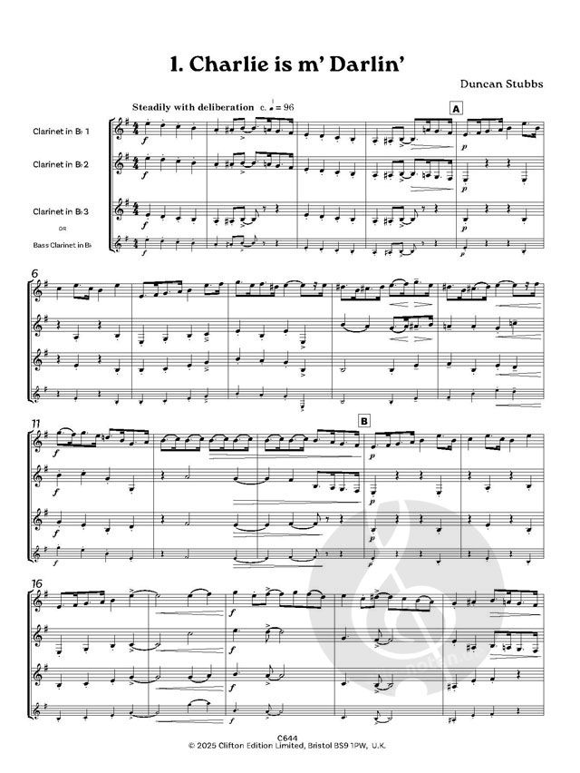 Spielbar entweder mit drei Klarinetten oder mit zwei Klarinetten und Bassklarinette.