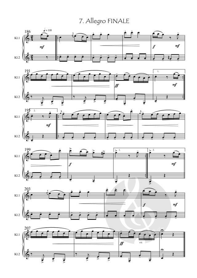 Das Mozart die Klarinette liebte, ist außer Frage, sonst hätte er nicht das allerschönste Werk für diese Gattung, das berühmte Klarinettenkonzert, geschrieben. Auch seine anderen kammermusikalischen Werke von und mit Klarinette gehören zum Standardrepertoire jedes guten Klarinettisten, allen voran natürlich die berühmten Kegelduette. In diesem Werk ist es ein Klarinetten Duo welches mozärtlich musiziert und dies bei einem Werk, das nur so von Einzigartigkeit und Einmaligkeit lebt - denn es wurde erst im September 2024 entdeckt. Überraschen Sie Ihr ihr Publikum mit diesem Ohrenbalsam in sieben kleinen Sätzen. Das Stück ist auch für Klarinettenquartett und weiteren interessanten Besetzungen erschienen.
