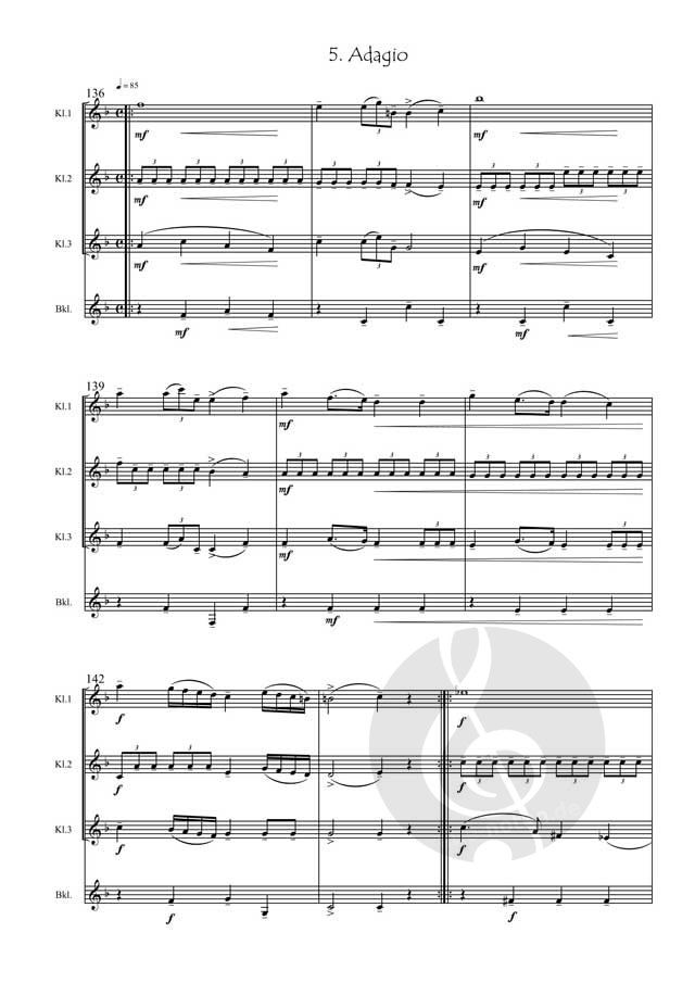 Das Mozart die Klarinette liebte, ist außer Frage, sonst hätte er nicht das allerschönste Werk für diese Gattung, das berühmte Klarinettenkonzert, geschrieben. Auch seine anderen kammermusikalischen Werke von und mit Klarinette gehören zum Standardrepertoire jedes guten Klarinettisten. In diesem Werk ist es ein Klarinettenquartett welches mozärtlich musiziert und dies bei einem Werk, das nur so von Einzigartigkeit und Einmaligkeit lebt - denn es wurde erst im September 2024 entdeckt. Überraschen Sie Ihr ihr Publikum mit diesem Ohrenbalsam in sieben kleinen Sätzen. Das Stück ist auch für Klarinetten Duo und weiteren interessanten Besetzungen erschienen.