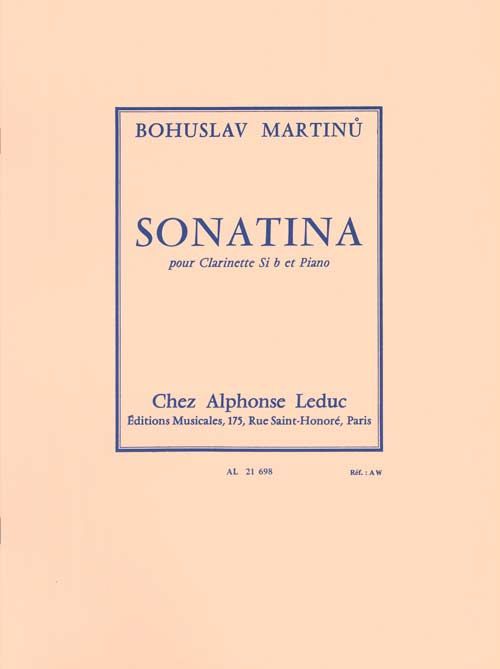 Composed in 1956 by Bohuslav Martinu, the Sonatina for Bb Clarinet and Piano is a neo-classical piece. This work, to be played as a single movement has been written in three different sections: Moderato, Andante and Poco Allegro. The rhythms are reminiscent of a polka and a march and the piece contains unexpected syncopation. Being one of Bohuslav Martinu's later works, it was written in New York, after he spent some time in Paris. Bohuslav Martinu (1890-1959) was a Czech composer and a violinist. Even though he was interested in different styles, including romanticism, jazz and expressionism, he wrote mainly neo-classical pieces, including 16 symphonies, 14 ballets and 15operas.
