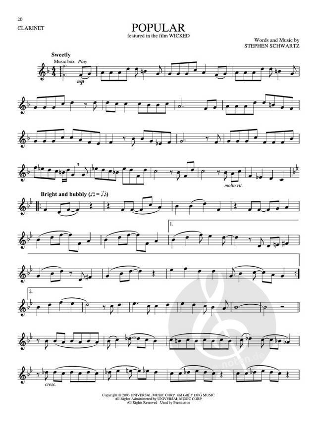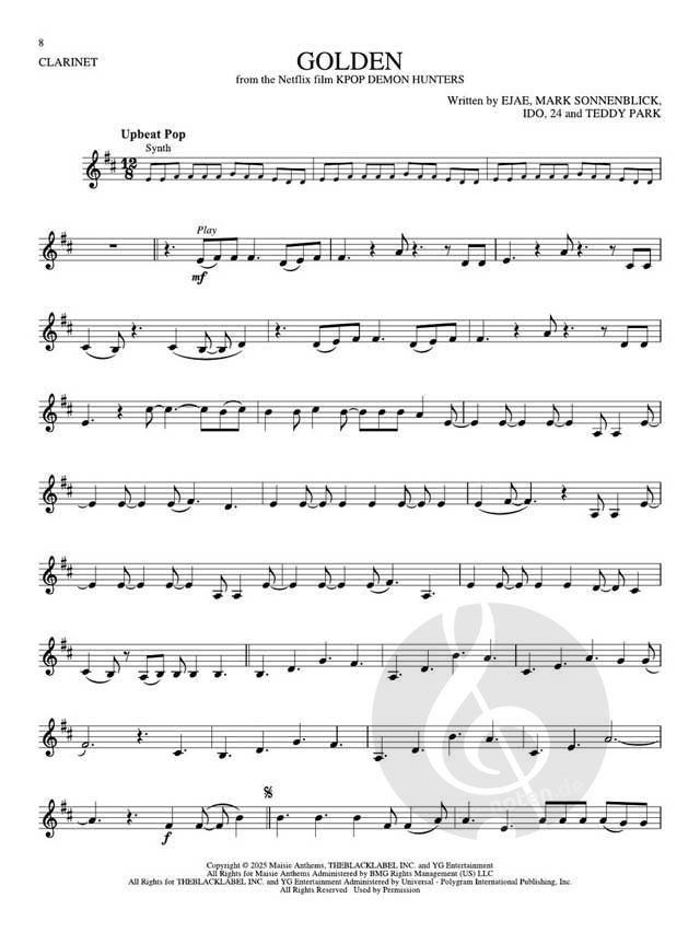 Bringen Sie die Hits aus den größten Filmen von heute auf Ihre Klarinette! Spielen Sie zu den besten Songs aus neuen Filmen, darunter Kpop Demon Hunters, Minecraft, Wicked, Moana 2, Snow White (2025), Joker: Folie a Deux, und mehr. Diese Sammlung enthält 12 denkwürdige Titel, die für Klarinette solo arrangiert wurden und den Stil und die Energie der Filme selbst einfangen. Zu den Titeln gehören Defying Gravity, Popular, Die with a Smile, Golden, I Feel Alive, Beyond und viele mehr. Perfekt für Spieler aller Niveaus, die ihre Lieblingshits zu Hause, im Unterricht oder auf der Bühne genießen wollen! Jedes Buch enthält Demo- und Backingtracks, die Sie mit dem Code im Buch streamen oder herunterladen können. Mit PLAYBACK+ können Sie den Ton verlangsamen, ohne die Tonhöhe zu verändern, Loop-Punkte setzen, die Tonart wechseln und das Panning des linken oder rechten Kanals für ein individuelles Übungserlebnis steuern.