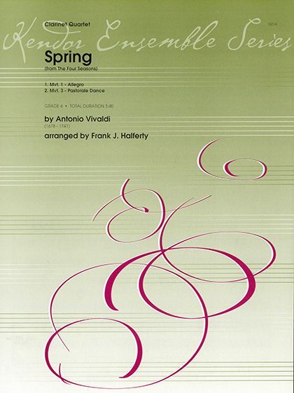 These two themes from Vivaldi's Spring are a must-have addition to the library of any grade 4 clarinet quartet. The energy of the Allegro movement, teamed up with the lyric, flowing character of the Pastoral movement, helps to create dynamic programming for any performance setting. Total duration 3:40.