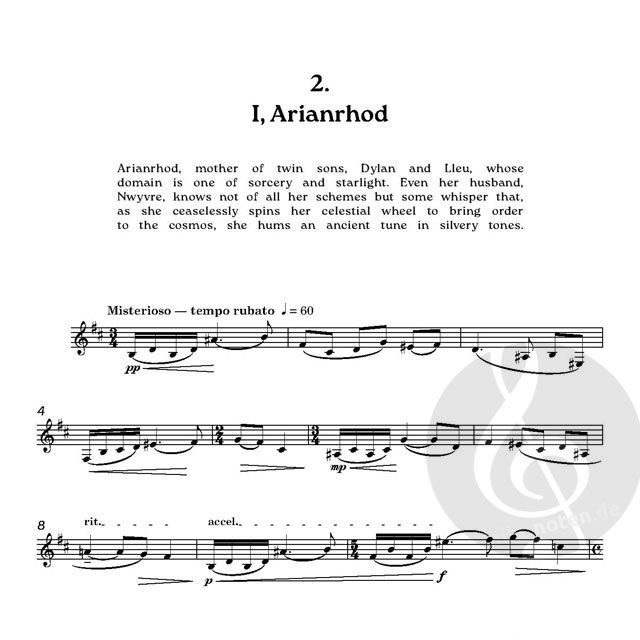 Arianrhod, Mutter der Zwillingssöhne Dylan und Lleu, deren Reich der Zauberei und des Sternenlichts ist. Selbst ihr Ehemann Nwyvre kennt nicht alle ihre Pläne, aber einige flüstern, dass sie, während sie unaufhörlich ihr himmlisches Rad dreht, um Ordnung in den Kosmos zu bringen, eine uralte Melodie in silbernen Tönen summt.