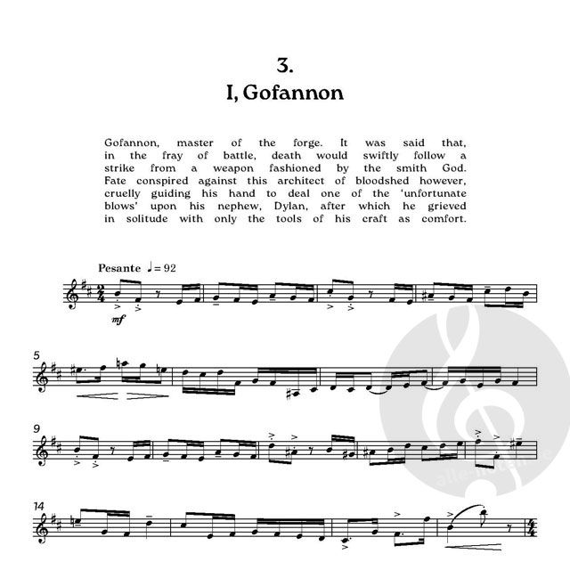 Gofannon, Meister der Schmiede. Es hieß, dass im Kampfgetümmel dem Schlag einer vom Schmiedegott gefertigten Waffe schnell der Tod folgen würde. Das Schicksal hatte sich jedoch gegen diesen Architekten des Blutvergießens verschworen und führte seine Hand grausam dazu, seinem Neffen Dylan einen der "unglücklichen Schläge" zu versetzen, woraufhin er in der Einsamkeit trauerte und nur die Werkzeuge seines Handwerks als Trost hatte.