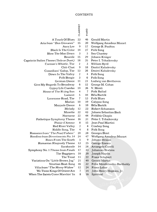 Forty easy, familiar solos from Baroque to Boogie. Piano accompaniment included.