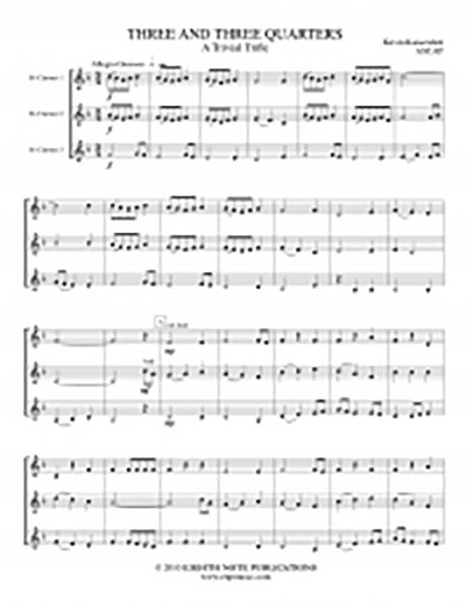 The title of this piece, Three and Three-Quarters , is not meant as some hidden cryptic message, but simply that of three performers getting together for some musical fun in three-quarter time. It is a lighthearted work, hence the subtitle 'A Trivial Trifle.'