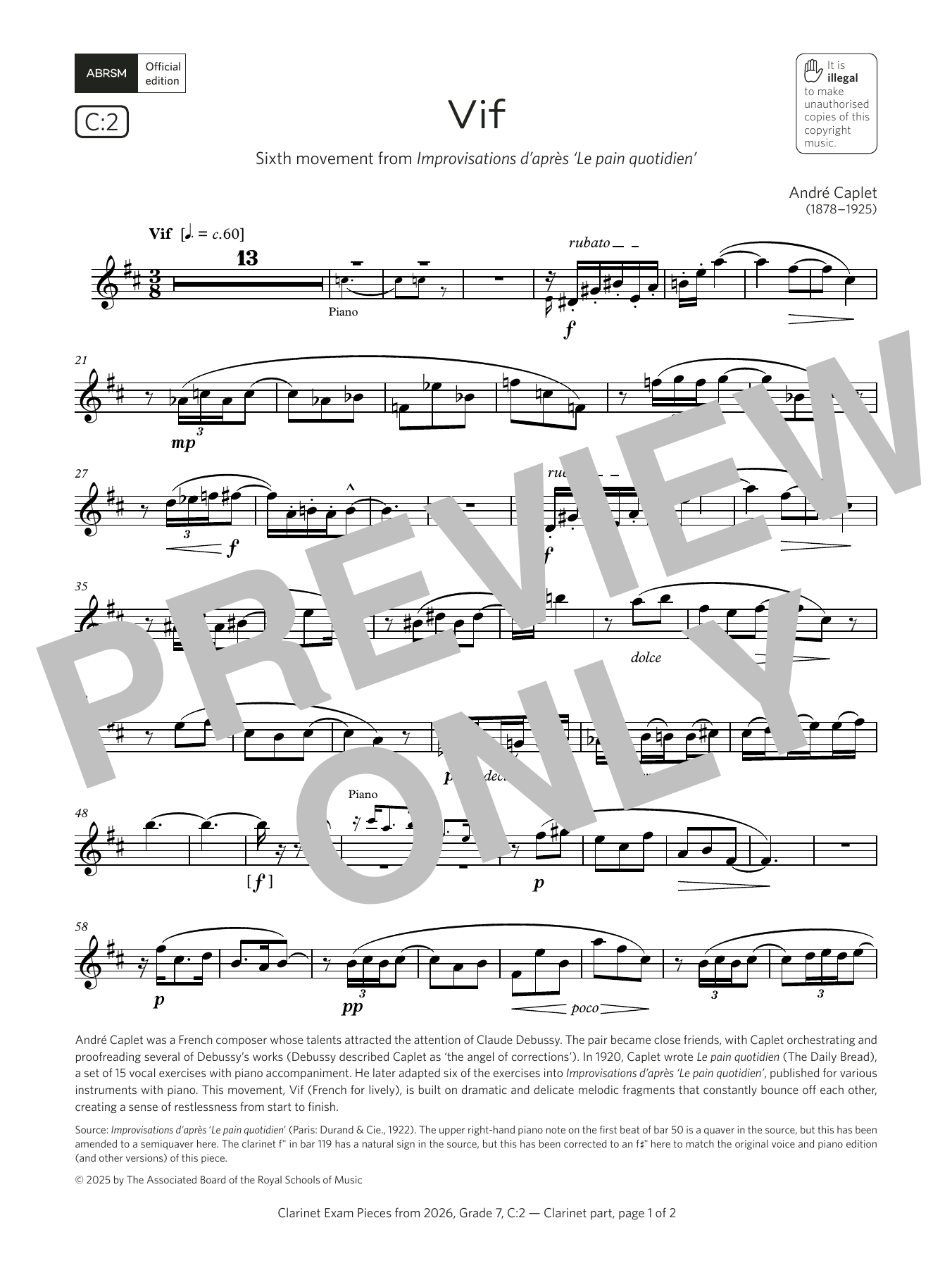 (Grade 7, list C2, from the ABRSM Clarinet Syllabus from 2026)