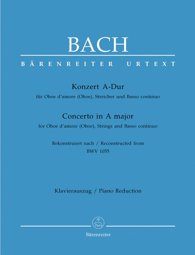 Rekonstruktion eines verschollenen Solokonzerts nach BWV 1055, Klavierauszug mit je 1 Solostimme für Oboe, Oboe d'amore - Reconstruction of a lost solo conerto according to BWV 1055 with a solo part for both oboe and oboe d'amore. Oboe d'amore/ Oboe, Streicher, Basso continuo - Klavierauszug