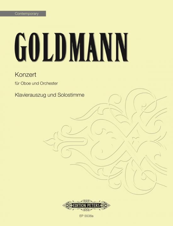 Das Konzert für Oboe und Orchester von Friedrich Goldmann ist ein 36-minütiges Werk und eines der bedeutendsten Oboenkonzerte des 20. Jahrhunderts. Es gestaltet sich als ausgedehnter sinfonischer Diskurs mit obligatem Solo, umfasst aber alle zeitgenössischen Spieltechniken und wurde von zahlreichen namhaften Solisten gespielt. Die Uraufführung fand am 14. Juni 1979 mit Burkhard Glaetzner und dem Orchester der Komischen Oper Berlin unter der Leitung von Friedrich Goldmann statt. Bei dieser neuen Ausgabe (EP5538a) handelt es sich um Solostimme und Klavierauszug, Partitur und Orchesterstimmen sind leihweise lieferbar.