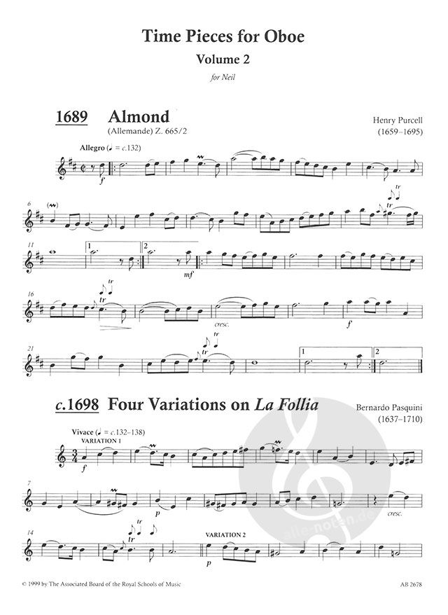 A two-volume anthology presenting attractive repertoire for oboe and piano from the sixteenth century to the present day. Each volume presents the pieces in chronological order and prints the year in which they were written giving a feel of different styles of music through time.