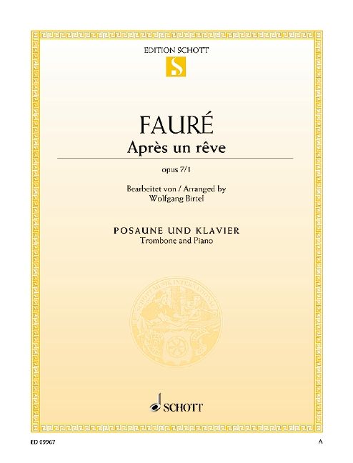 In den 1870er Jahren schrieb Fauré drei Lieder, die später als Op. 7 zusammengefasst wurden. An erster Stelle steht Après un rêve, ein romantisches, schwärmerisches Lied. Die beliebte Melodie gibt es nun auch in einer Bearbeitung für Posaune und Klavier.