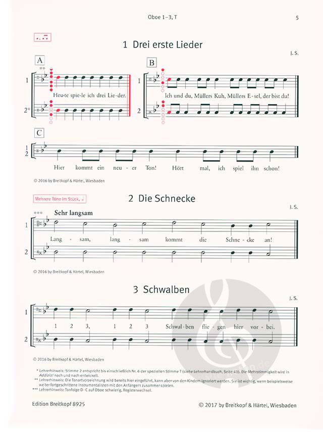 Im ersten Band werden die Notenwerte bis zu Achteln in einem moderaten Tonumfang vorgestellt. Dazu kommen einigeVor- und Versetzungszeichen und notwendige Hilfsgriffe. Besonders interessant für die jungen Spieler ist eine Extra-Seite, auf der die Geschichte des eigenen Instruments bebildert dargestellt ist.
