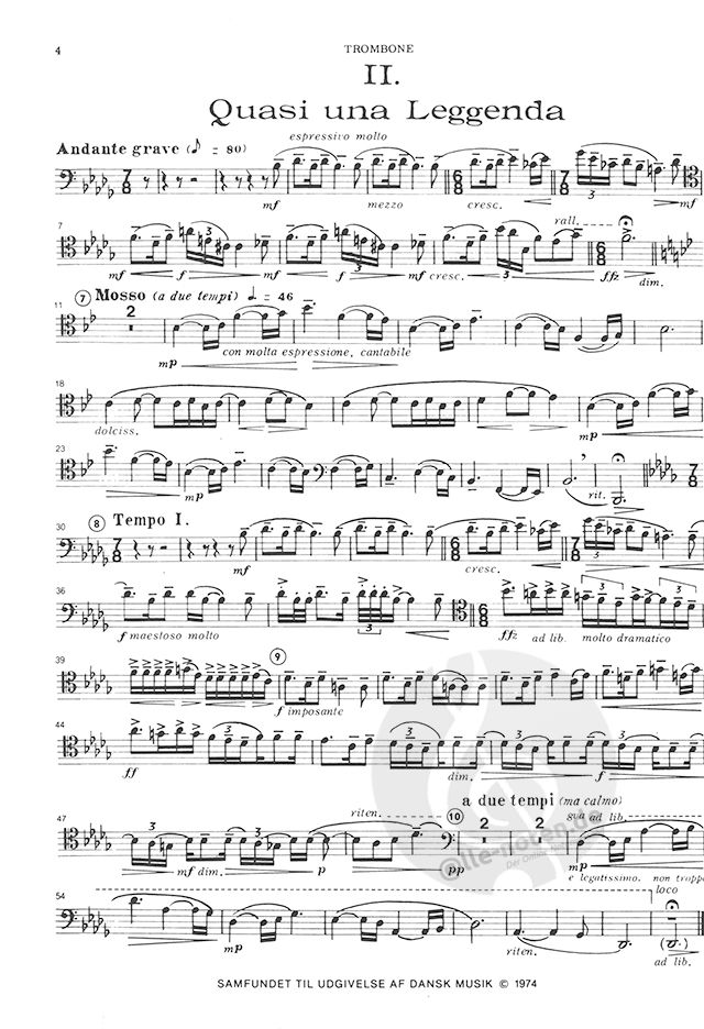 This trombone concerto was composed by Launy Grøndahl 1924 during the composer's stay in Italy. The work is thought to have been written in response to the high standard of the trombone section of the Royal Orchestra in Copenhagen.