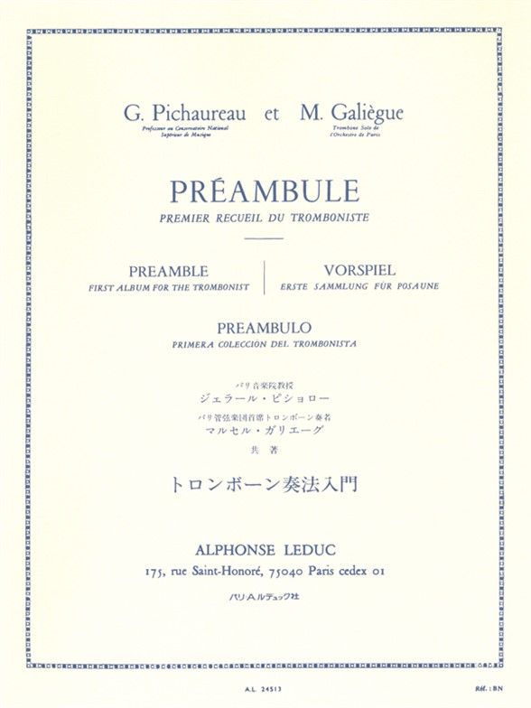 Pichaureau G. Galieg Preambule Premier Du Tromboniste Trombone Book