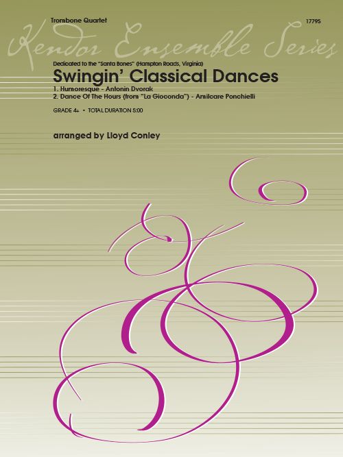Trombonists will savor these creative variations on the light classical favorites Humoresque (Dvorak) and Dance Of The Hours (Ponchielli) for grade 4+ quartets. Both themes feature jazz harmonies and a fun-loving swing style. Total duration 5:00. Kendor Trombone Quartet.