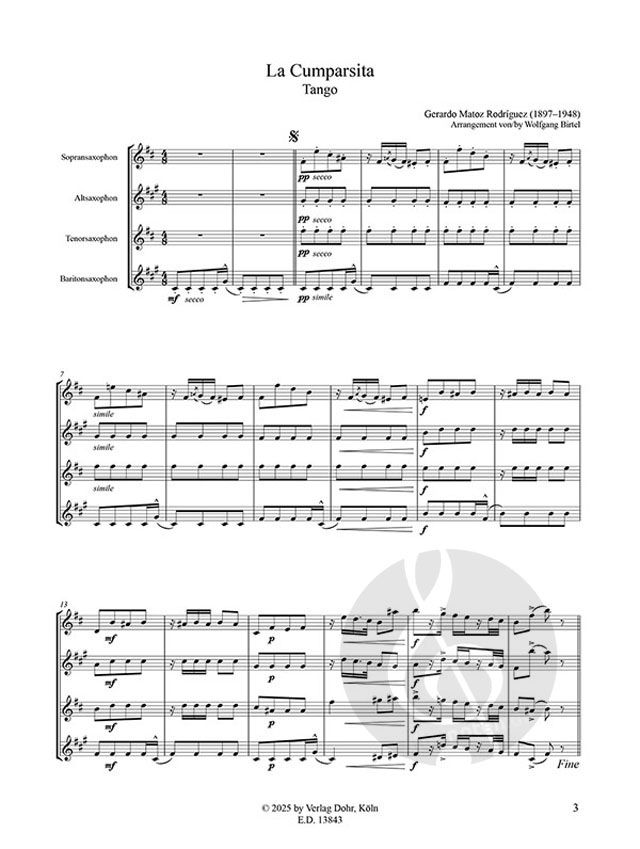 Saxophon Noten nach Verlag