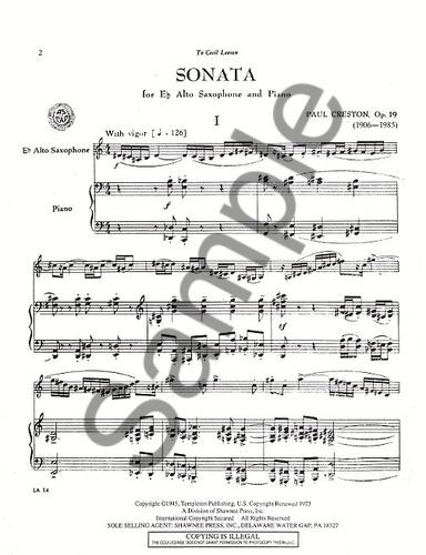 Three movement sonata for E flat alto saxophone and piano.