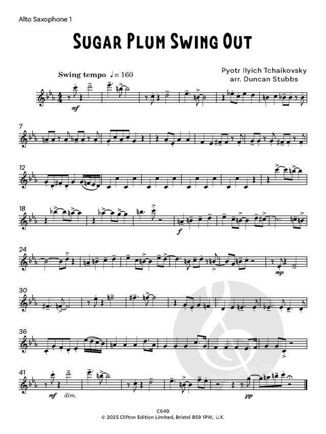 Sugar Plum Swing Out präsentiert drei schwungvolle Arrangements aus Tschaikowskis Nussknacker-Ballett. Drei Altsaxophone oder zwei Altos und Tenor. Partitur und Stimmen enthalten.