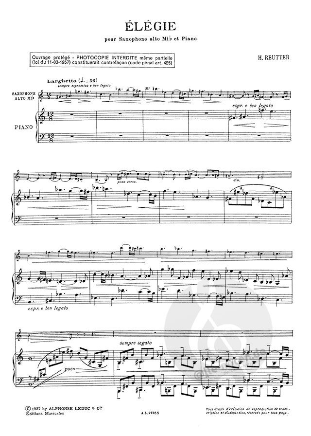 Hermann Reutter: Elégie (Saxophone-Alto & Piano)