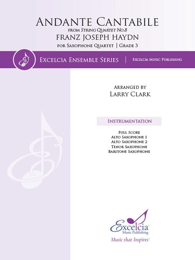Andante Cantabile, from Franz Joseph Haydn's String Quartet No. 8, has been arranged for Saxophone quartet by Larry Clark. This Iconic piece of literature has stood the test of time and is now available for a wider audience. We know you will love Andante Cantabile.