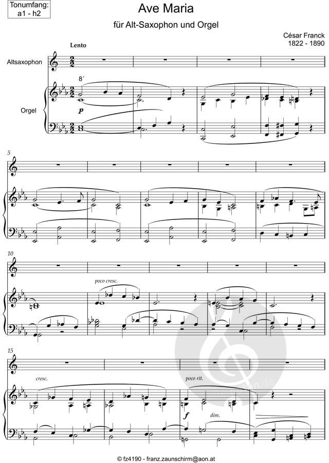 Dieses "Ave Maria" von César Franck besticht durch kantable Linien, warme Harmonik und einen getragenen, meditativen Charakter. Ein dankbares Werk für die musikalische Gestaltung von Gottesdienst, Andacht und Konzert – jetzt sofort als Noten-Downlaod.